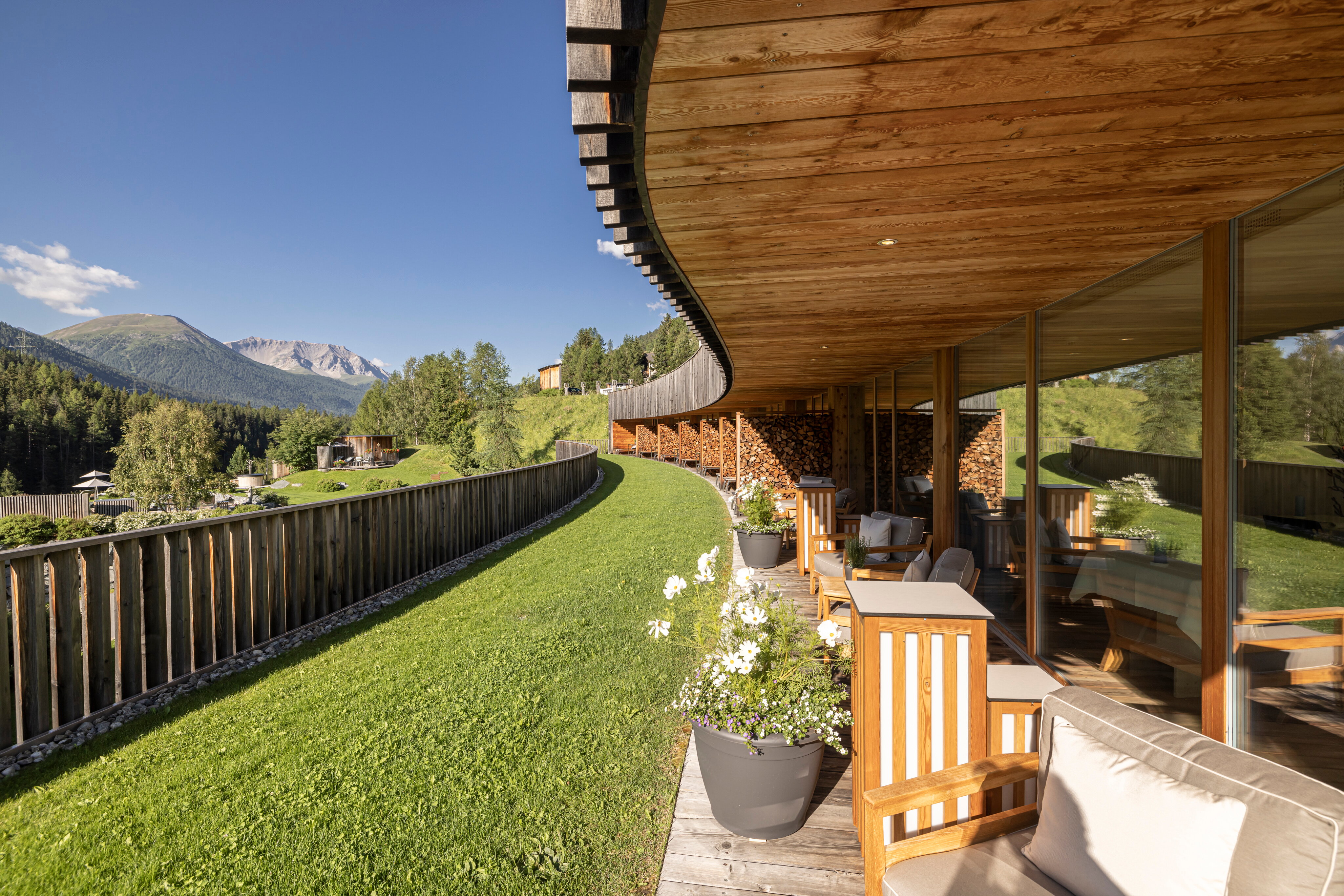 «In Lain» ist Romanisch und bedeutet «In Holz». Sofort spüren Sie, dass dieses edle Material den Charakter des Hotels bestimmt. Jahrhundertealtes Arven-, Lärchen- und Tannenholz schmiegen sich sanft in die grandiose Bergwelt und verbindet sich zu einem Ganzen. Ihnen öffnet sich diese einmalige Welt in Holz als reiner Kraftort. Unsere Leidenschaft ist es, Sie das ganze Jahr über mit herzlicher Gastlichkeit und wunderschönen Momenten zu verwöhnen.