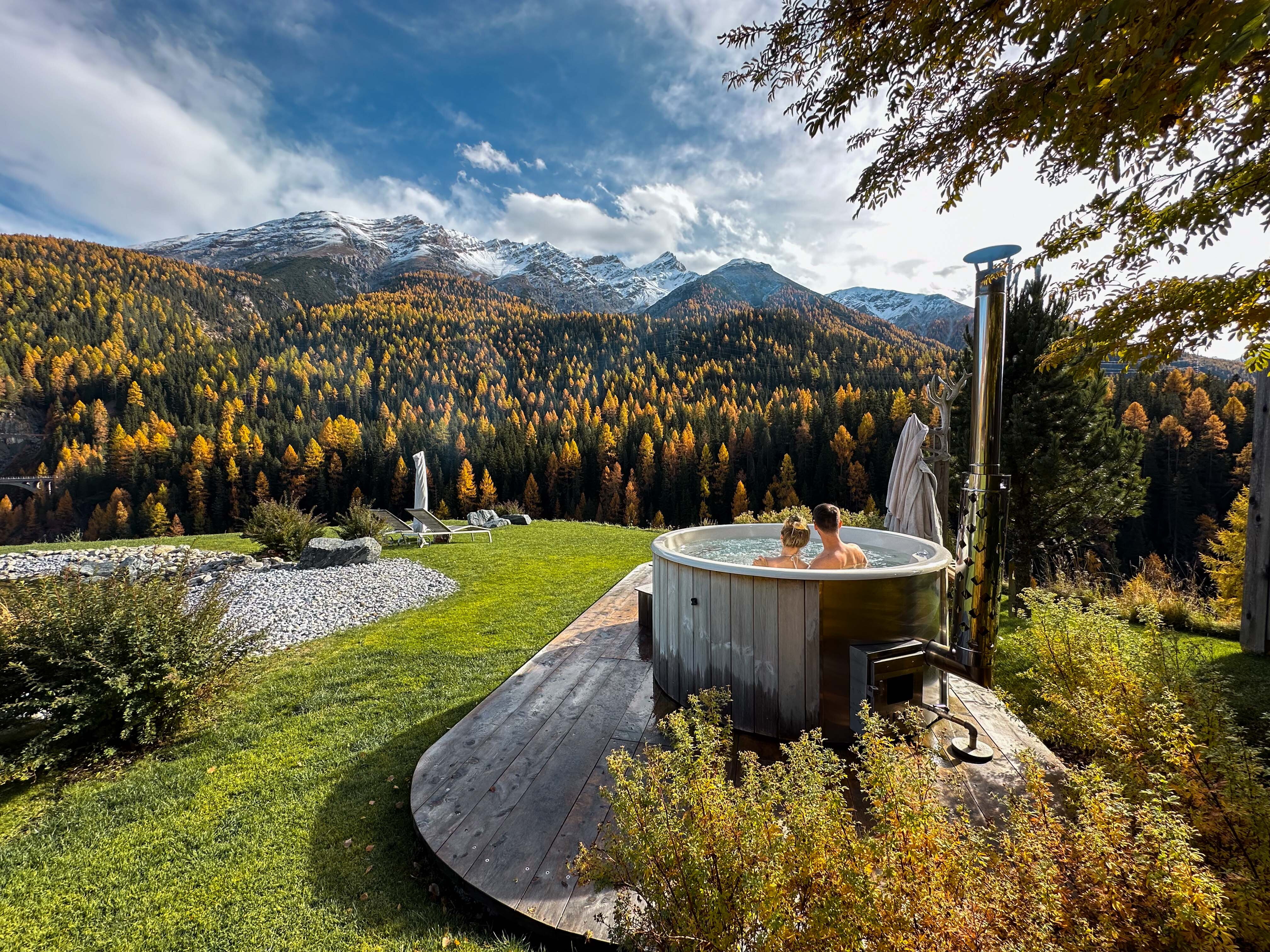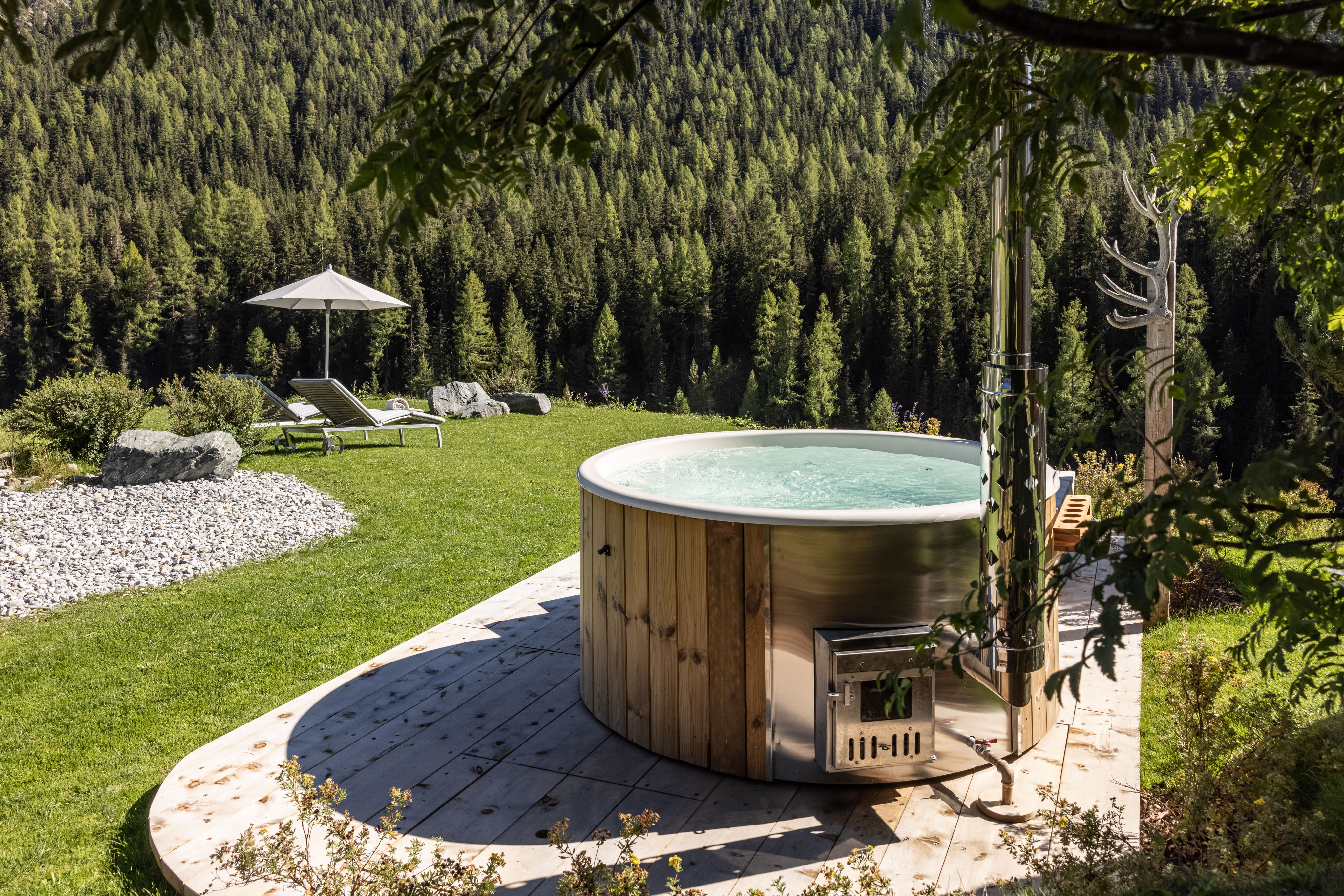 Ob Sommer oder Winter - der Badebottich im Hotelgarten ist einfach nur Entspannung pur. Baden Sie in 38 °C warmem Arvenwasser, das seine Temperatur durch das Heizen mit Arvenholz erhält. Sie fühlen sich danach entspannt und erholt. Arvenholz hat viele Eigenschaften, die sich positiv auf Ihre Gesundheit und Ihre Wohlbefinden auswirken. Kuscheln Sie sich danach unter die Bettdecke - Sie werden sich wie neu geboren fühlen.