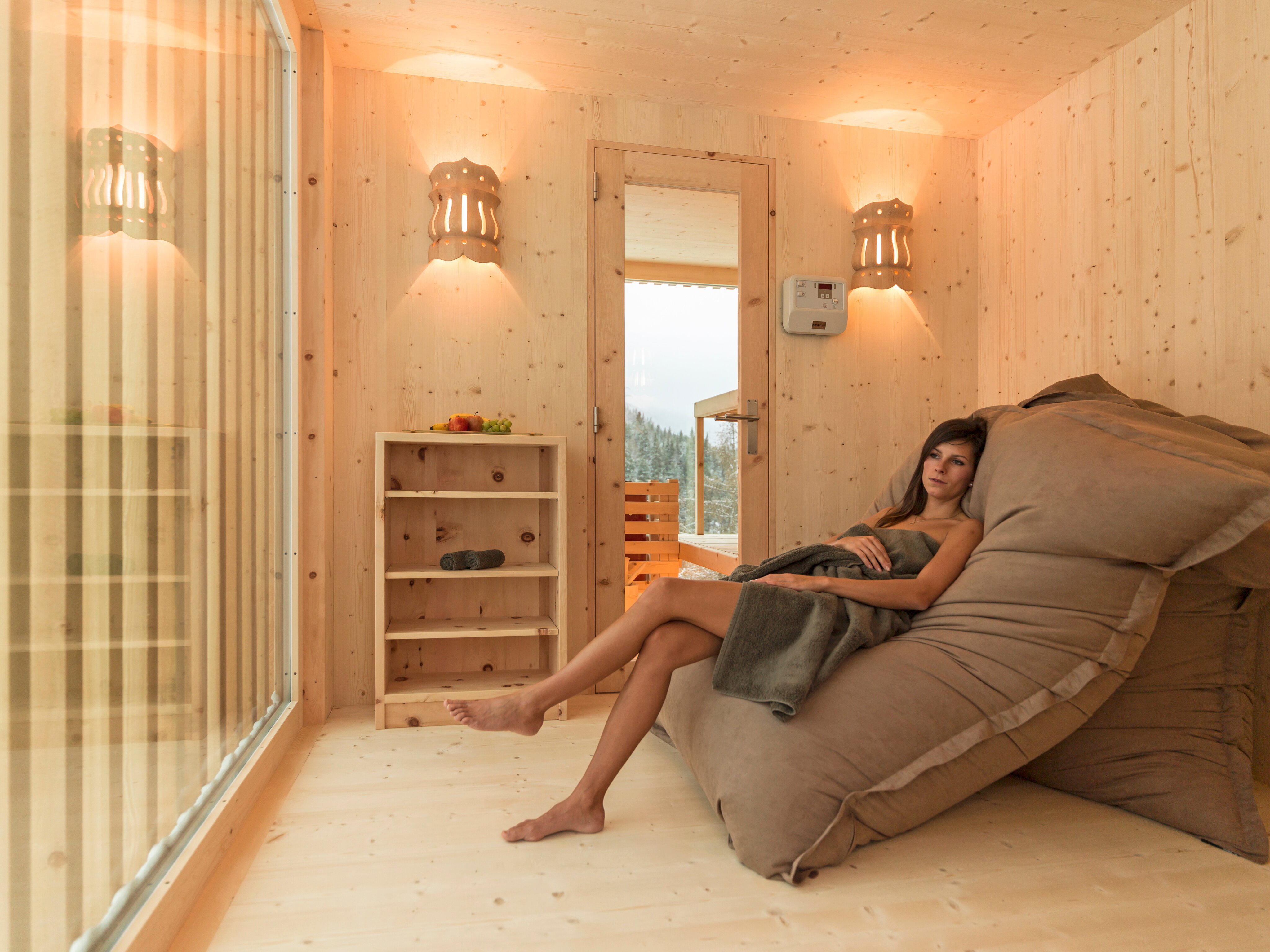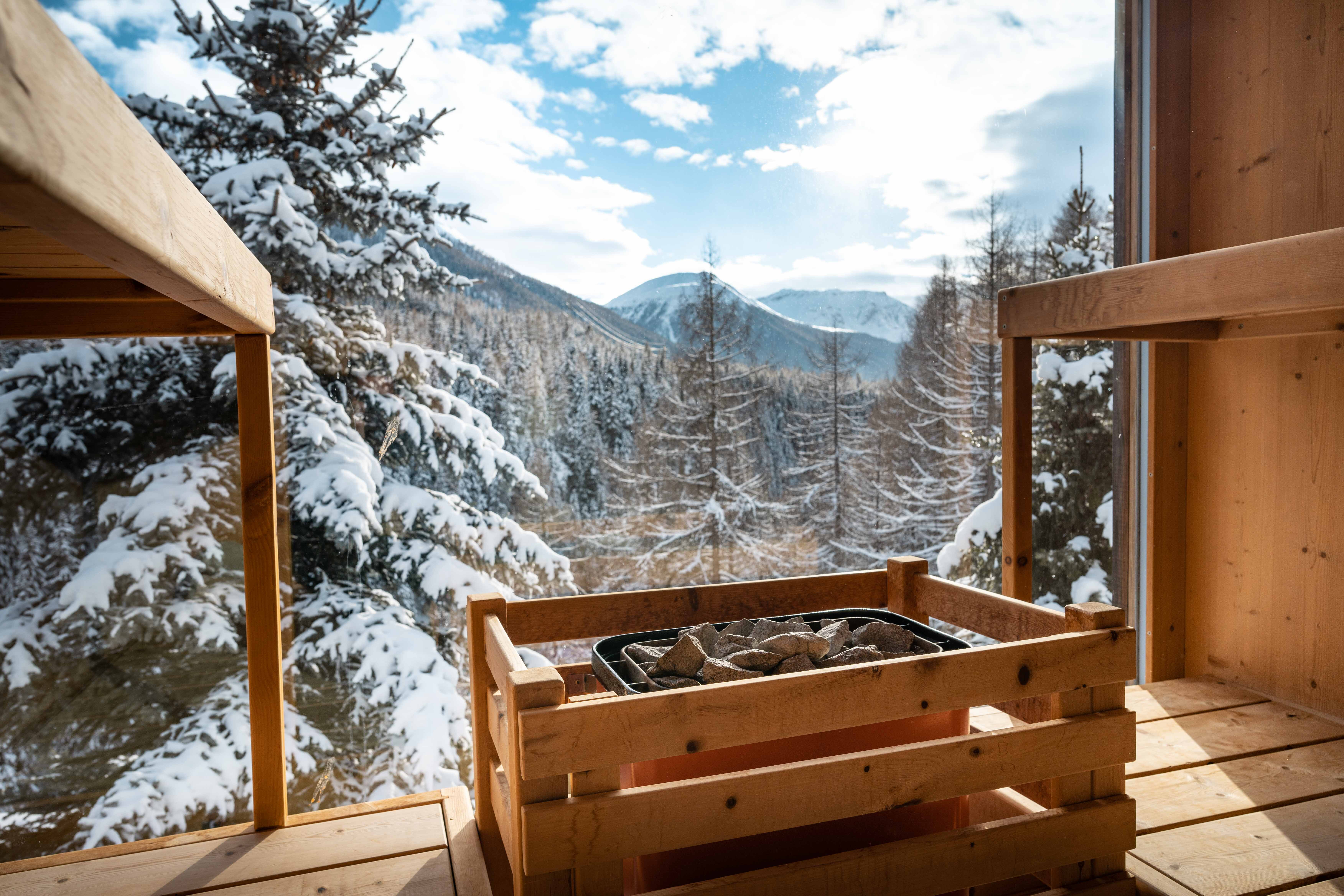 The floor-to-ceiling glass garden sauna facing the Inn Gorge at IN LAIN Hotel Cadonau is another gem. While you sweat, you look out over a breathtaking mountain panorama. The Inn Gorge is right in front of you and the mountains of the National Park are very close. You can cool down after the sauna either under the cool shower in the garden or in the nature swimming pond in summer. One thing is certain: You will feel revitalised afterwards. Offering an ideal atmosphere, the Swiss pine relaxation room is the place to truly relax and unwind after it all.
